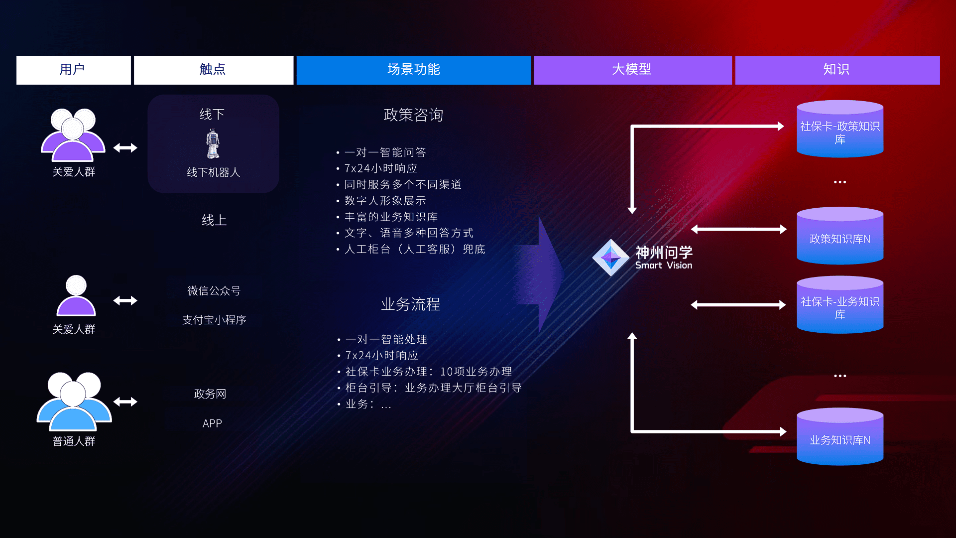 在服务大厅部署客服机器人,,在线上应用和小程序配置客服数字人,,,,724小时为群众解答常规问题,,客服机器人无法处理的,,,转现场人工处理。。